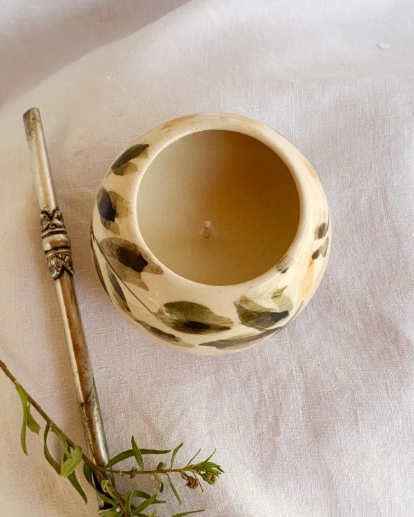 Mate de cerámica artesanal, convertido en vela aromática con esencia suave de coco y vainilla. Pensado como una pieza decorativa y sensorial, que combina arte y bienestar.